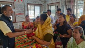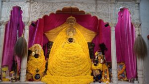 भक्तों की अर्जी लगाते, पीताम्बरी वस्त्र व प्रसादी बाटते पुजारी।
