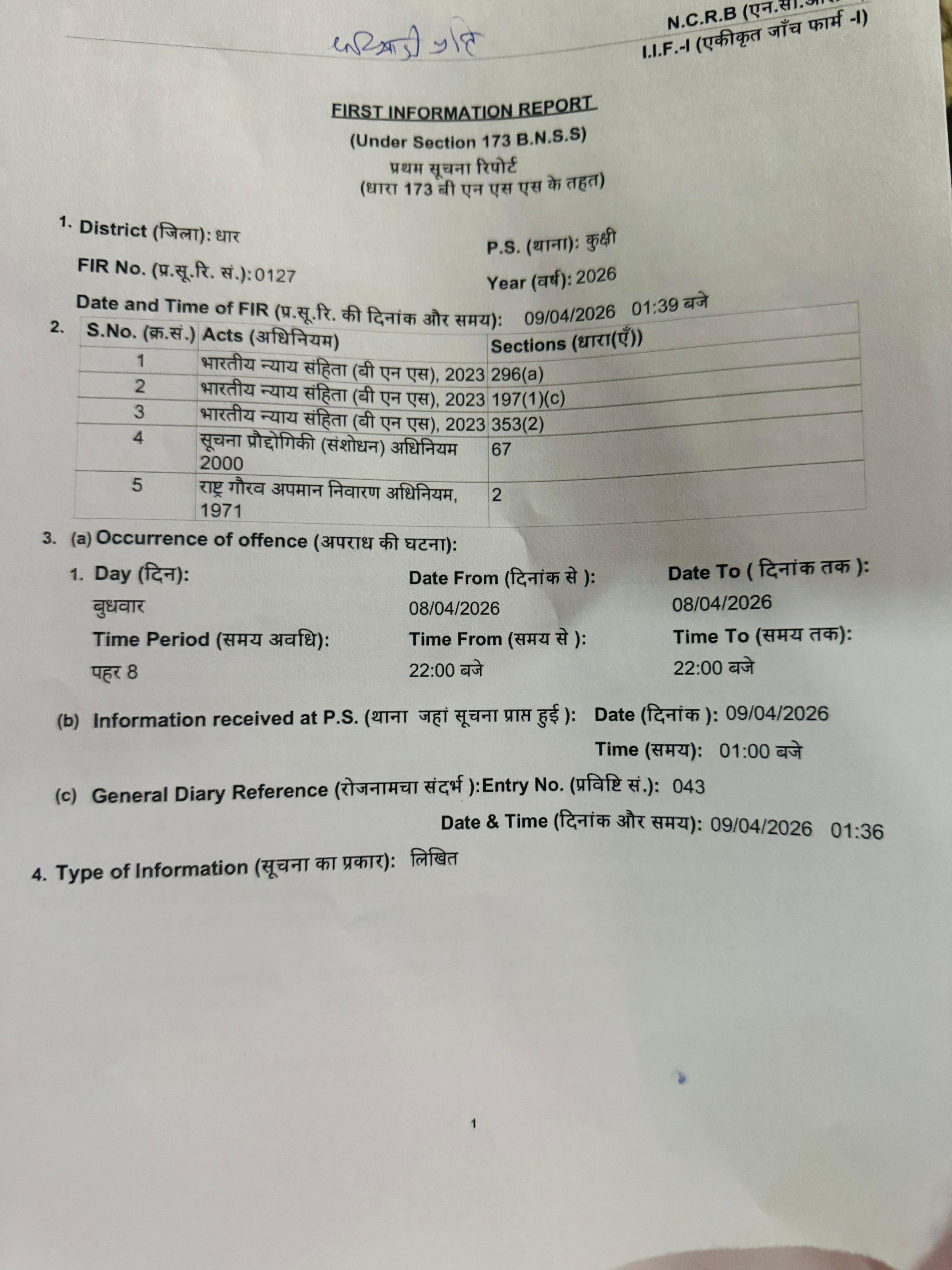 कुक्षी। सोशल मीडिया पर भारत के संविधान निर्माता डॉ_भीमराव_अंबेडकर_जी एवं पुलिस प्रशासन एवं भारत के संविधान के खिलाफ अभद्र टिप्पणी और अशोभनीय भाषा का प्रयोग करने के मामले में कुक्षी_पुलिस ने सख्त रुख अपनाया है। संजय_परसाई नामक व्यक्ति के विरुद्ध गंभीर धाराओं में FIR दर्ज की गई है।